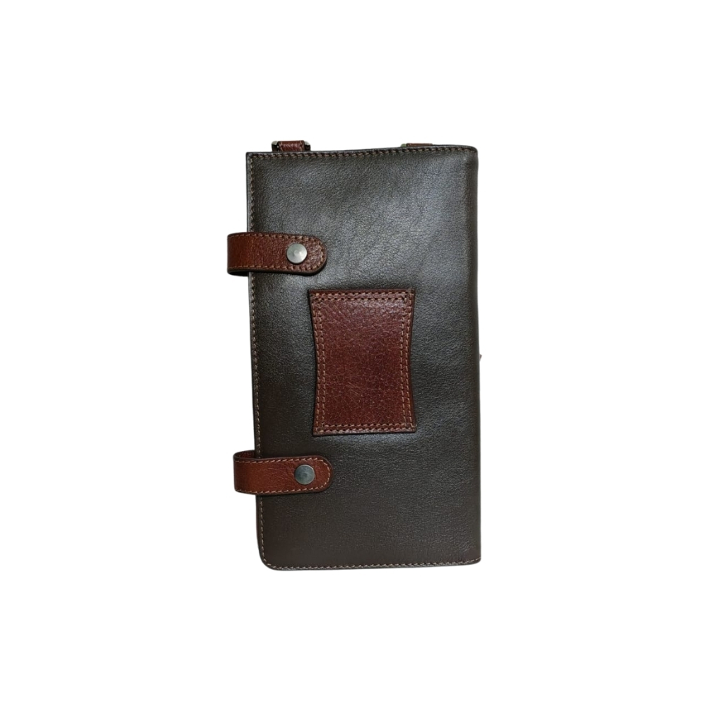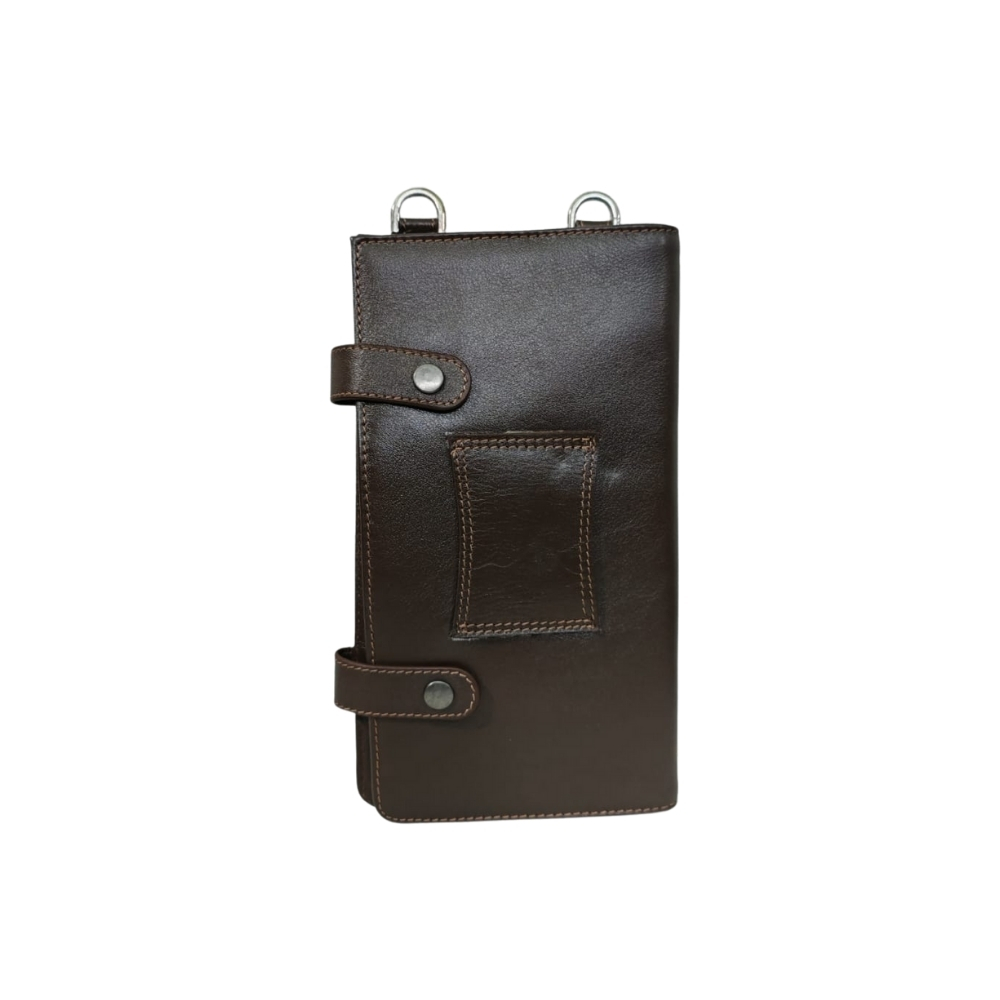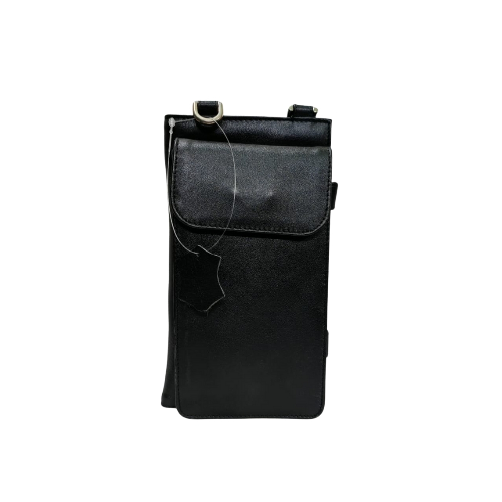 The bag features multiple card slots, a secure zip pocket, and a snap-button compartment—ideal for carrying essentials like phone, wallet, cards, documents, and small accessories. Its slim profile and strap loops allow comfortable crossbody or hand carry, suitable for daily use, travel, and professional settings.
