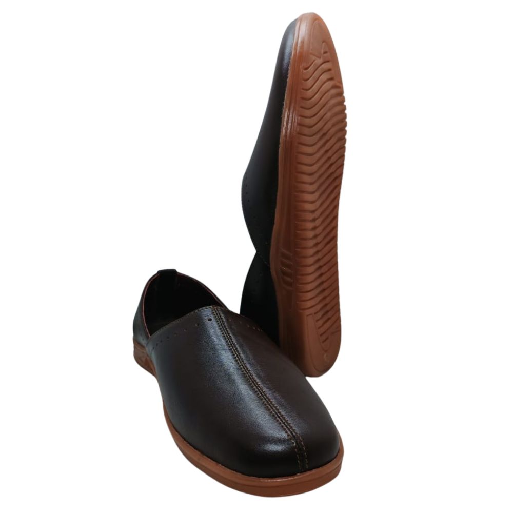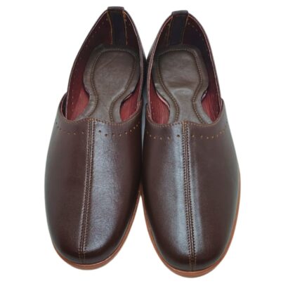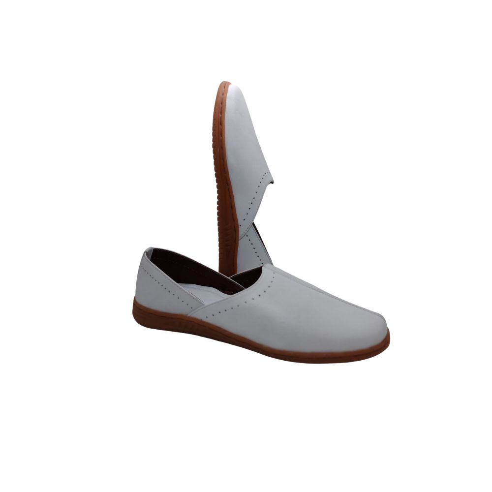 Step into elegance and comfort with our Premium Genuine Leather Ladies Slip-On Nagra Shoes. Designed with a minimalist silhouette and fine stitch detailing, these shoes offer a perfect blend of traditional charm and modern simplicity. Crafted from high-quality genuine leather, they provide a soft, smooth finish that enhances durability while maintaining a refined look.
